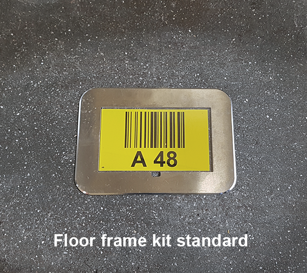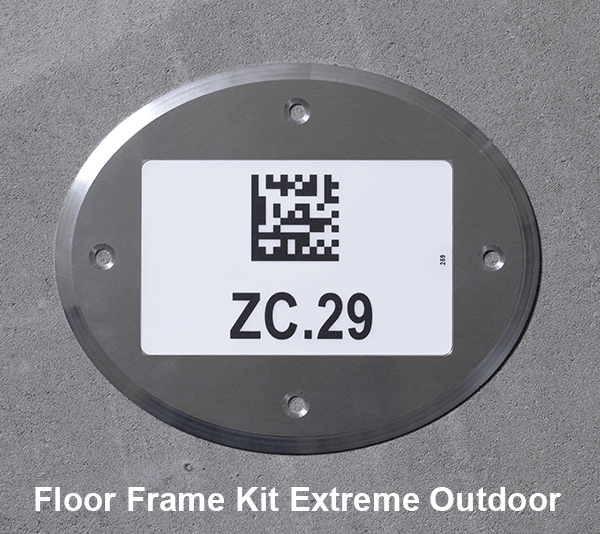 Het vloerlabel in het frame kan worden uitgevoerd met een barcode, Datamatrix-code en/of alfanumerieke informatie. De indoorvariant is voorzien van een vervangbaar afdekplaatje dat de codering langdurig beschermt. Bij de outdoorvariant ligt het label verzonken in het frame en is het afgewerkt met een extra dikke, beschermende topcoat voor maximale duurzaamheid.