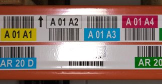 Op deze afbeelding wordt het verschil in labelleesbaarheid duidelijk zichtbaar. Het stellingetiket met mat laminaat (boven) behoudt zowel de barcode als de tekst onder direct licht, terwijl het glanzende laminaat (onder) de informatie grotendeels blokkeert door reflectie. Voor magazijnen, stellingen en industriële labels biedt een mat laminaat daardoor een significant voordeel voor snelle scanning en duidelijke leesbaarheid.